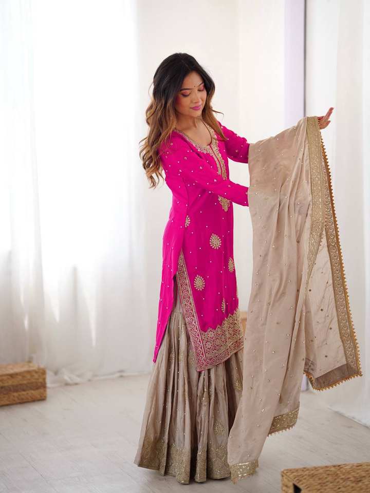 ชุดชาราราผ้าไหมชิโนนขายส่ง พร้อมงานปักเลื่อมประดับมุกอย่างดี 3 ชิ้น ชุดสำเร็จรูปสำหรับงานปาร์ตี้สำหรับผู้หญิง
