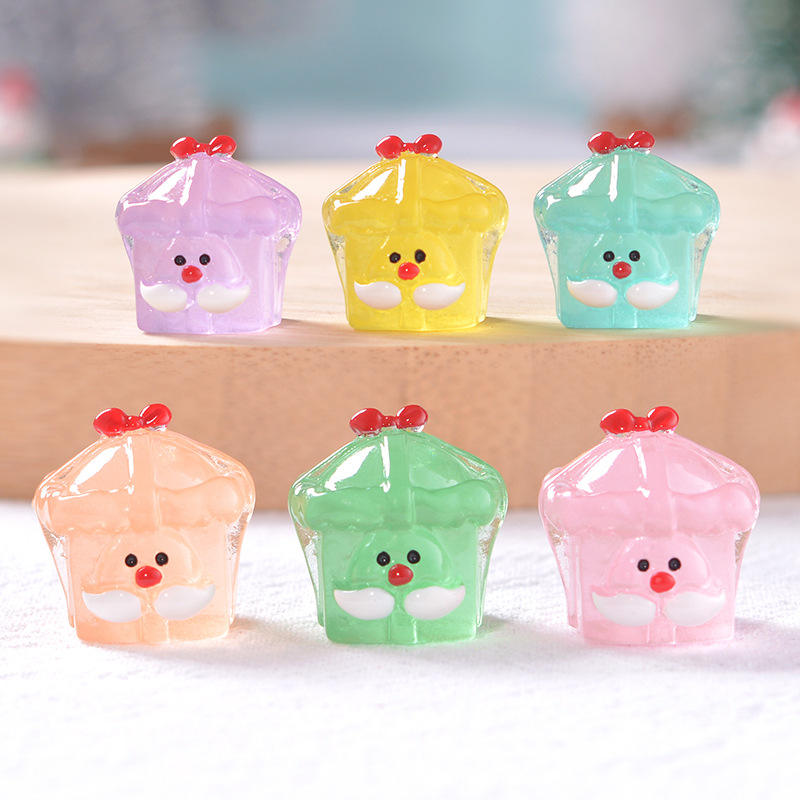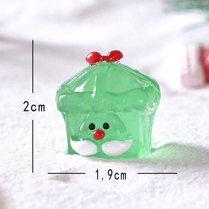 กล่องของขวัญทำจากเรซินซานตาคลอสเรืองแสงสุดสร้างสรรค์สำหรับตกแต่งภูมิทัศน์หิมะขนาดเล็กโปร่งใส