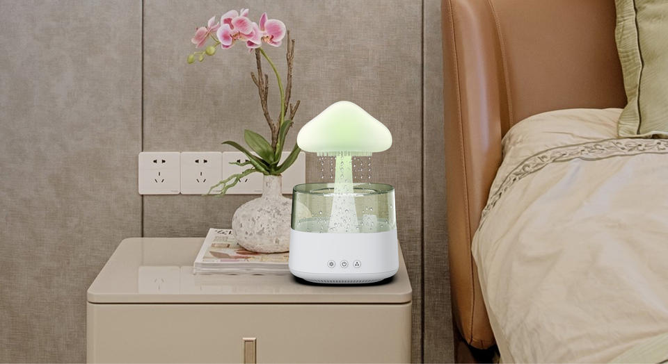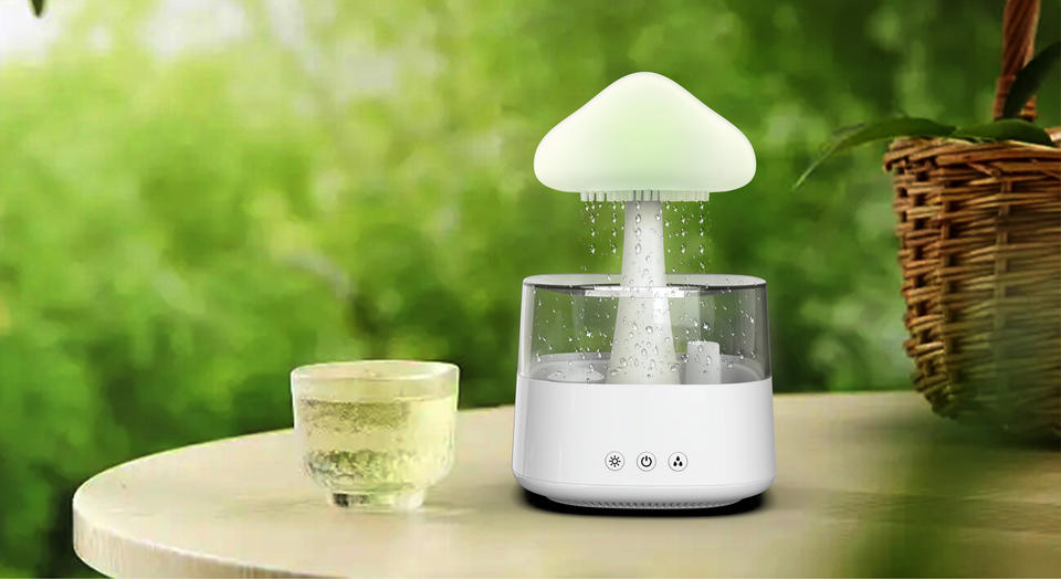เครื่องเพิ่มความชื้นในอากาศฝนเมฆเสียงสีขาวนอนหลับผ่อนคลายอารมณ์น้ำหยด