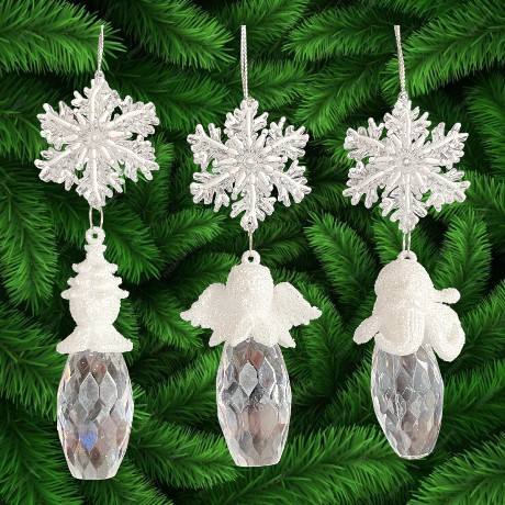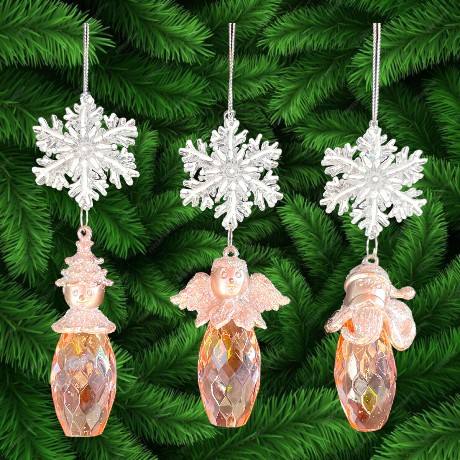 ของตกแต่งบ้านแบบแขวนสำหรับคริสต์มาสและปีใหม่ ขายส่ง ตุ๊กตาหิมะอะคริลิคใสสีทอง รูปนางฟ้า หัวซานต้า พร้อมดาวประดับ