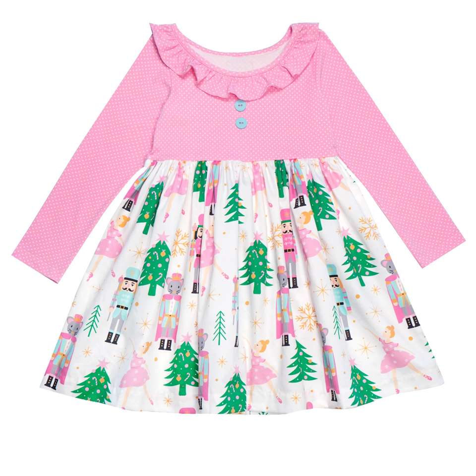 ขายส่งชุดนอนพิมพ์ลายคริสต์มาสนัทแครกเกอร์ชุดเด็กผู้หญิงสีชมพูชุดเสื้อผ้าบูติกสำหรับเด็กผู้หญิง