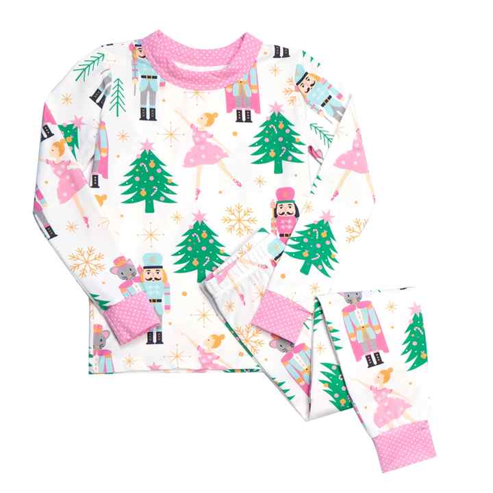 ขายส่งชุดนอนพิมพ์ลายคริสต์มาสนัทแครกเกอร์ชุดเด็กผู้หญิงสีชมพูชุดเสื้อผ้าบูติกสำหรับเด็กผู้หญิง