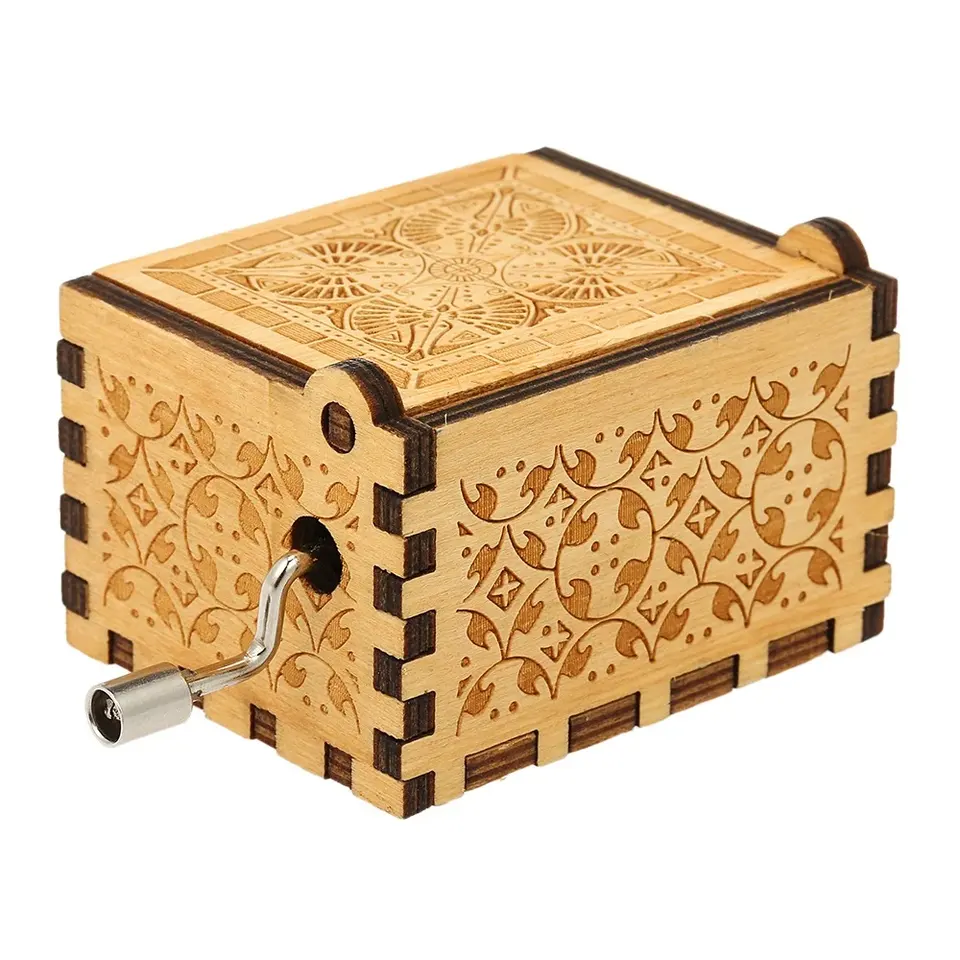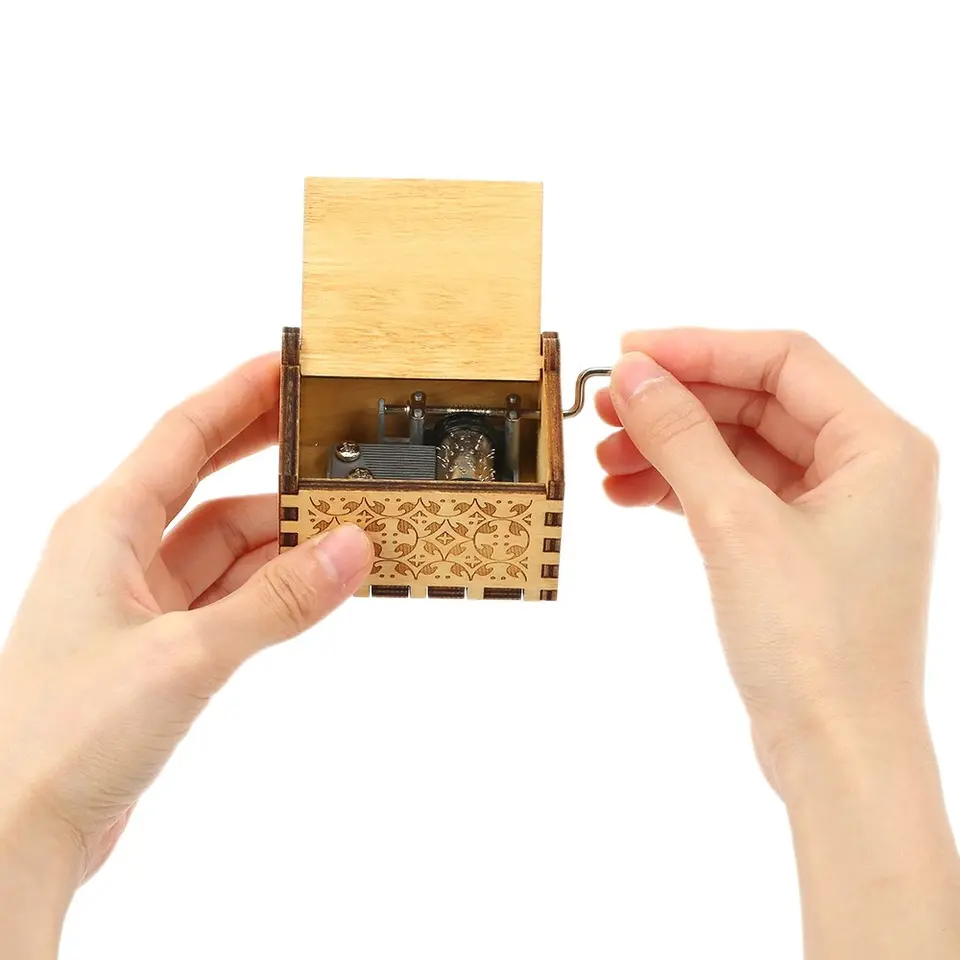 กล่องดนตรีไม้แกะสลักลายวินเทจสำหรับคริสต์มาส ขายส่ง กล่องดนตรีแบบหมุนมือ สั่งทำได้ตามต้องการ