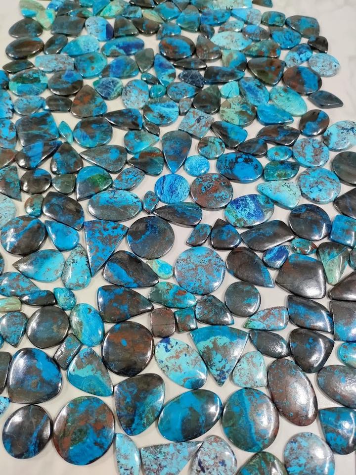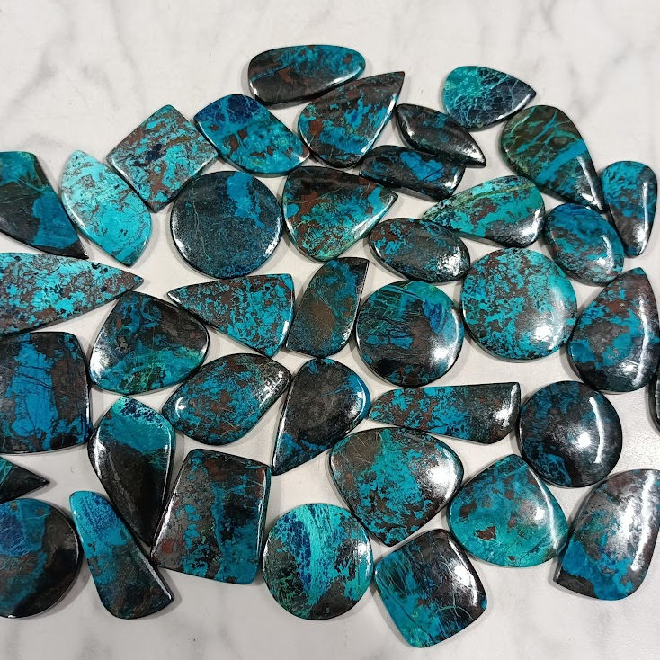 คริสโซคอลล่าธรรมชาติขายส่ง พลอยเม็ดเดี่ยวสำหรับทำเครื่องประดับ คุณภาพสูง สีฟ้า-เขียว ขนาด 30-55 มม. แบบขายส่งจำนวนมาก