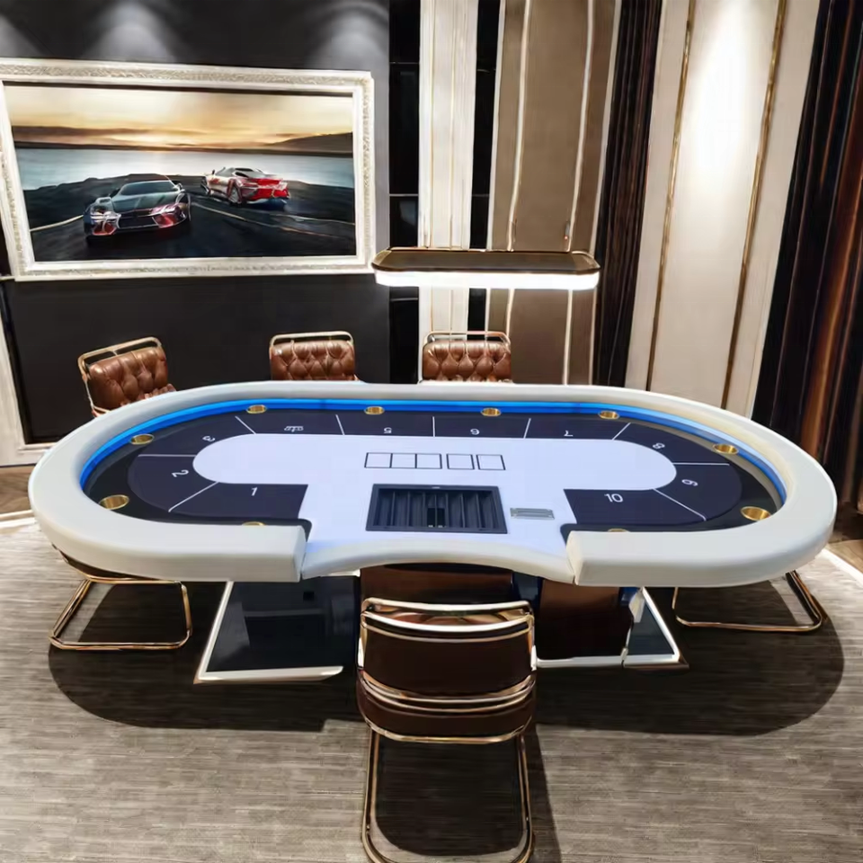 Wholesale Classic 10-Seat Customizable Wooden Poker Table Oval Multi-game Design for Blackjack & Entertainment Use