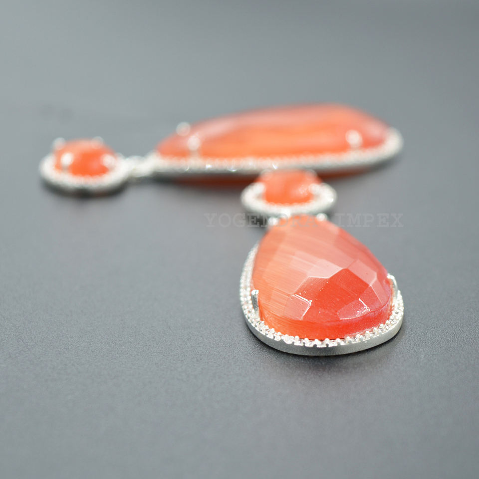 925สเตอร์ลิงสีส้มเงินโมนาลิสาพร้อมต่างหูอัญมณี CZ แบบห้อยต่างหูคุณภาพดีสำหรับผู้หญิงต่างหูแบบห้อย