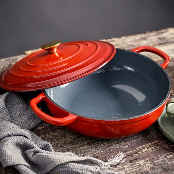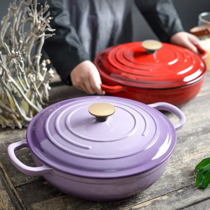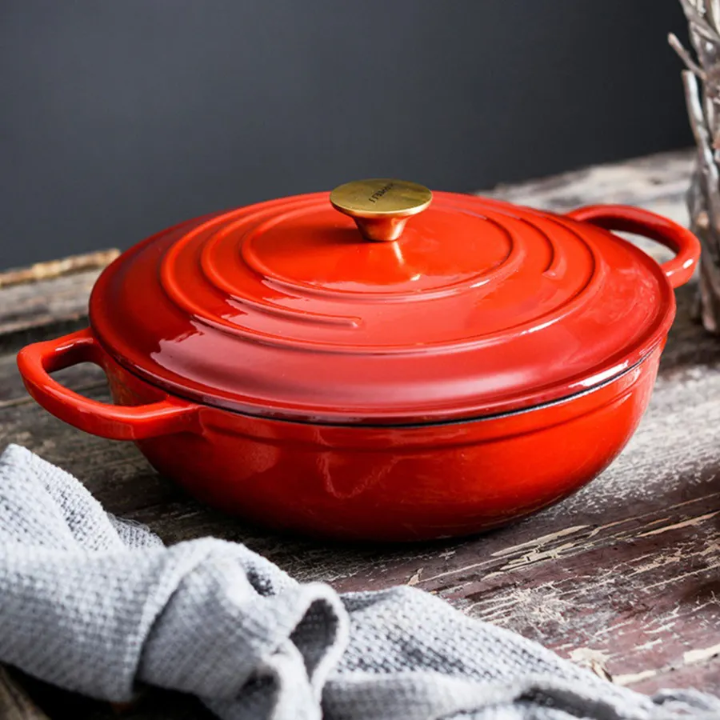 Wholesale Classic Design Cast Iron Casserole Red Color Coated with Durable Metal Round Shape From India at Reasonable Rate 2025