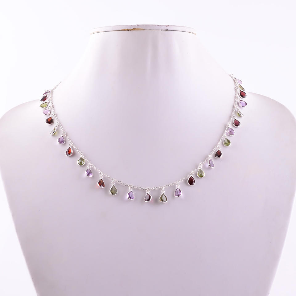 สร้อยคอเงินสเตอร์ลิง925แฮนด์เมดดีไซน์คลาสสิกสำหรับผู้หญิงสร้อยคอเงินแท้พร้อมอัญมณีผสม