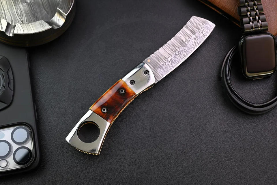 อุปกรณ์สูบบุหรี่แบบคลาสสิกขายส่ง มีดตัดซิการ์เหล็กดามัสกัส เครื่องมือตัดซิการ์ มีดซิการ์