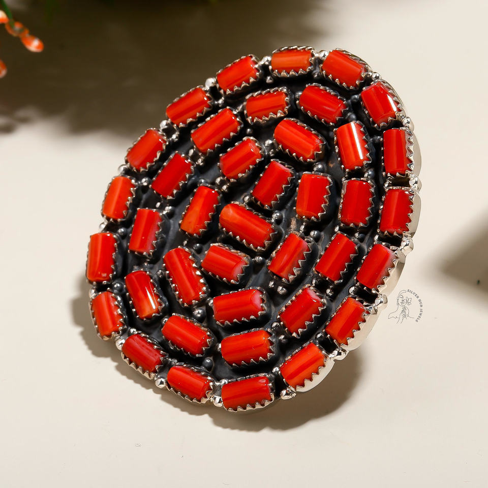 แหวนปะการังทำมือทำด้วยมือเงิน925สไตล์คลาสสิกสำหรับงานหมั้นและงานแต่งงานของผู้หญิง