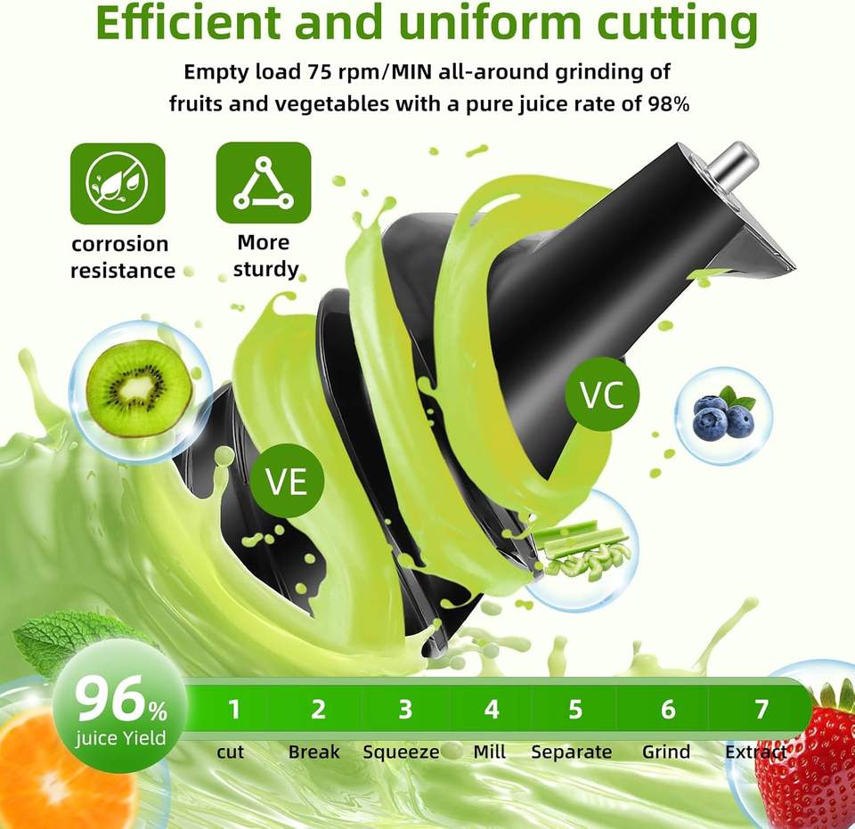 Automatic Pulp Ejection, Dish Washer Safe, Reverse, Quiet Motor