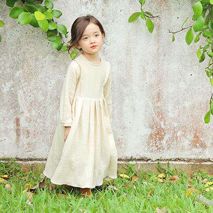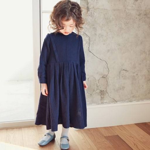 ชุดเดรสเด็กผู้หญิงแขนยาว ทรงยาว ไม่มีลาย สำหรับขายส่ง