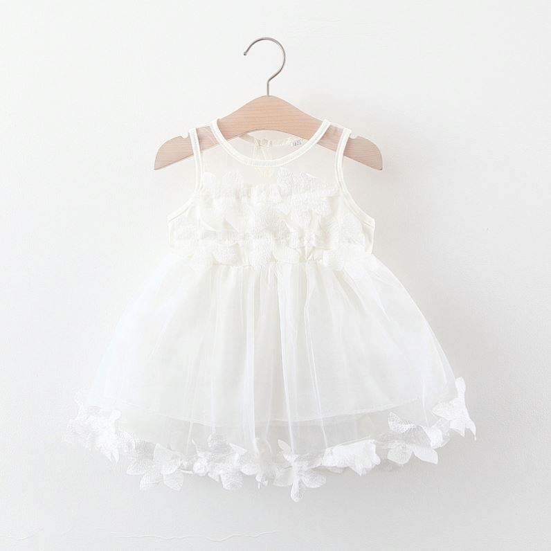 ชื่อ:ชุดเดรสเด็กผู้หญิงวันเกิด แขนกุด ตกแต่งดอกไม้ ผ้าฝ้าย