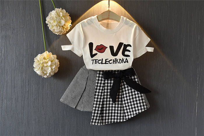 ตลาดขายส่งเสื้อผ้าเด็กผู้หญิงชุดฤดูร้อนสวยงามลายตัวอักษร ชุดเซ็ต 2 ชิ้น