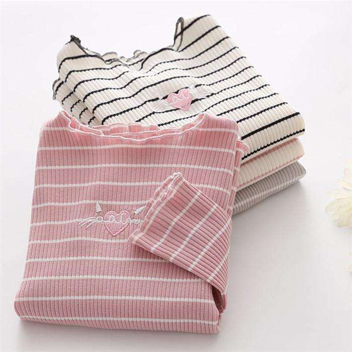เสื้อยืดถักแขนยาวดีไซน์แฟนซีสำหรับเด็กผู้หญิง
