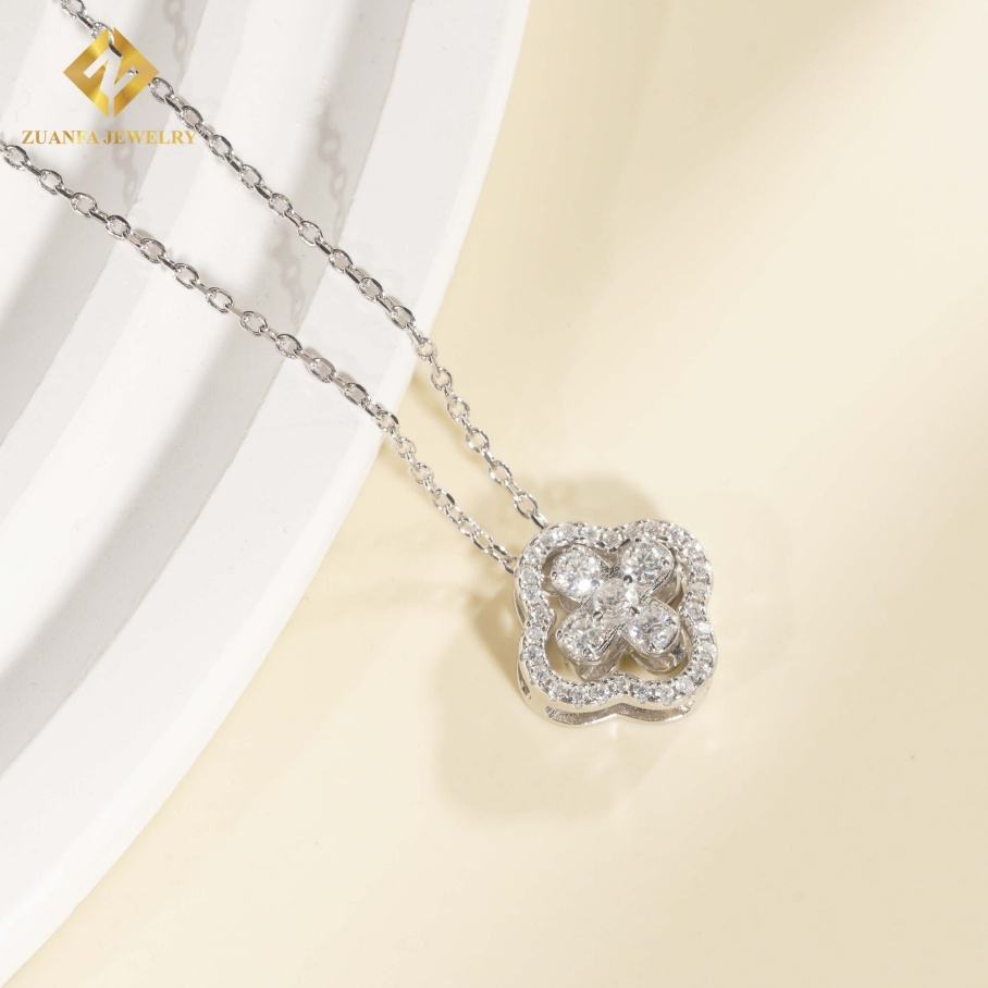 สร้อยคอเงินสเตอร์ลิง925โคลเวอร์สเน่ห์แฟชั่นเครื่องประดับเพชรโมอิสสำหรับงานเลี้ยงของผู้หญิง