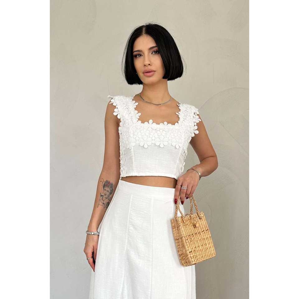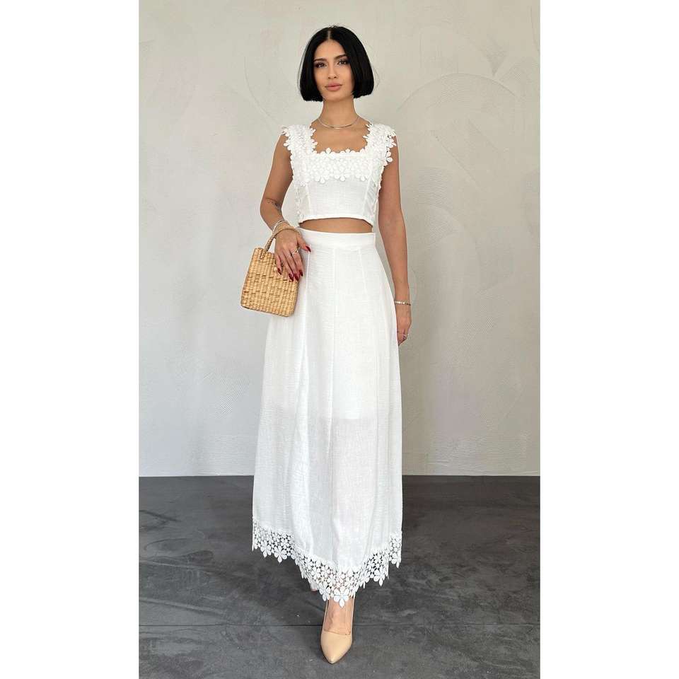 ชุดเซ็ตเสื้อครอปท็อปผ้าลูกไม้สีขาวสไตล์คลับขายส่ง พร้อมกระโปรงสั้นเหนือเข่า ไซส์ XS- XL สำหรับฤดูร้อน