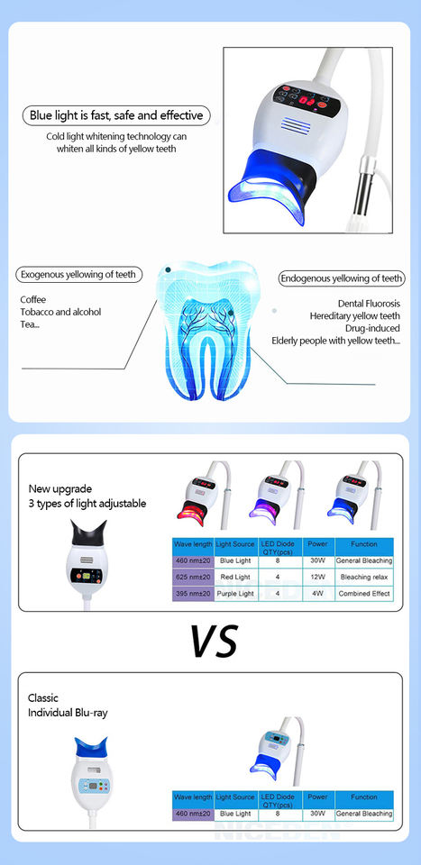 ไฟเย็นสีฟ้าอ่อนทำให้ฟันขาวกระจ่างใสสีเหลืองเทคโนโลยีฟอกฟันขาวปากกระบอกซิลิกาไร้อันตราย