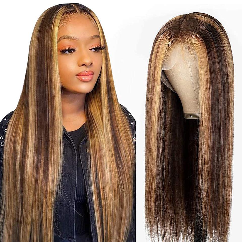 ขายส่งสีน้ำผึ้งสีบลอนด์ไฮไลท์เส้นผมมนุษย์เส้นผมธรรมชาติ13X6คลื่นลึกโปร่งใสด้านหน้าลูกไม้วิกผมเต็ม