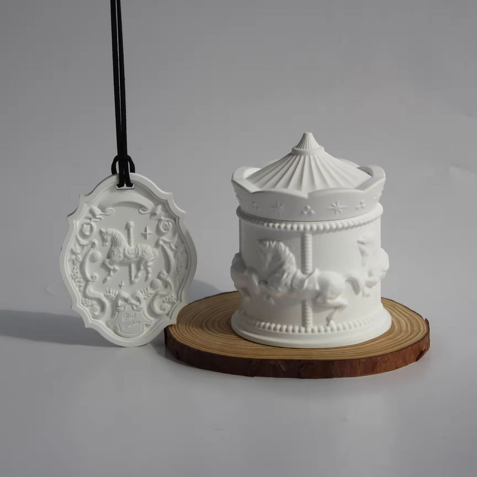 เทียนหอมกลิ่นอโรมาในถ้วยยิปซัมหลากสีสัน รูปทรงม้าหมุน ทำจากขี้ผึ้งถั่วเหลือง สำหรับเป็นของขวัญสุดหรู