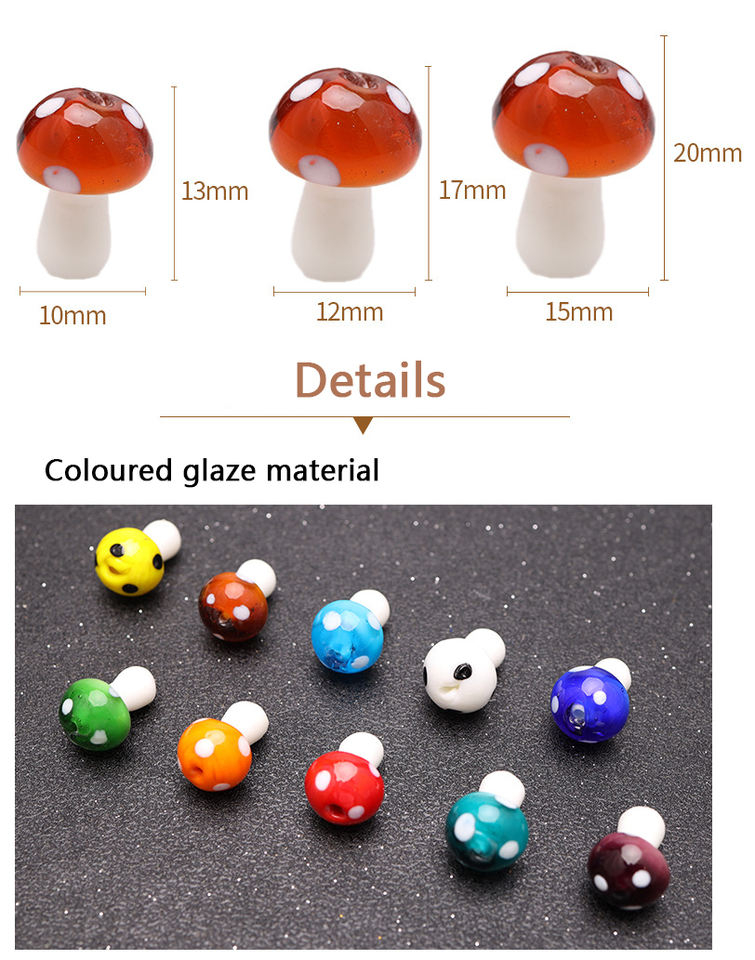 ลูกปัดแก้วคริสตัลหลากสีรูปเห็ดสำหรับงาน DIY ทำสร้อยคอ จี้ และเครื่องประดับ