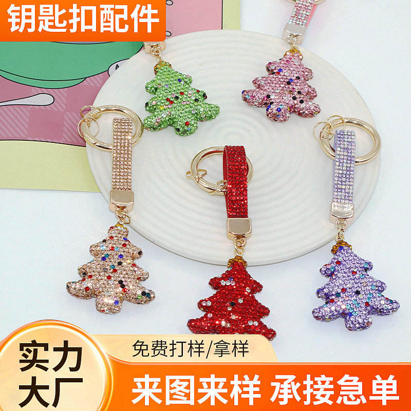 พวงกุญแจรูปต้นคริสต์มาสประดับเพชรหลากสีพวงกุญแจรถประกายคริสตัลสำหรับวันหยุดพักผ่อน