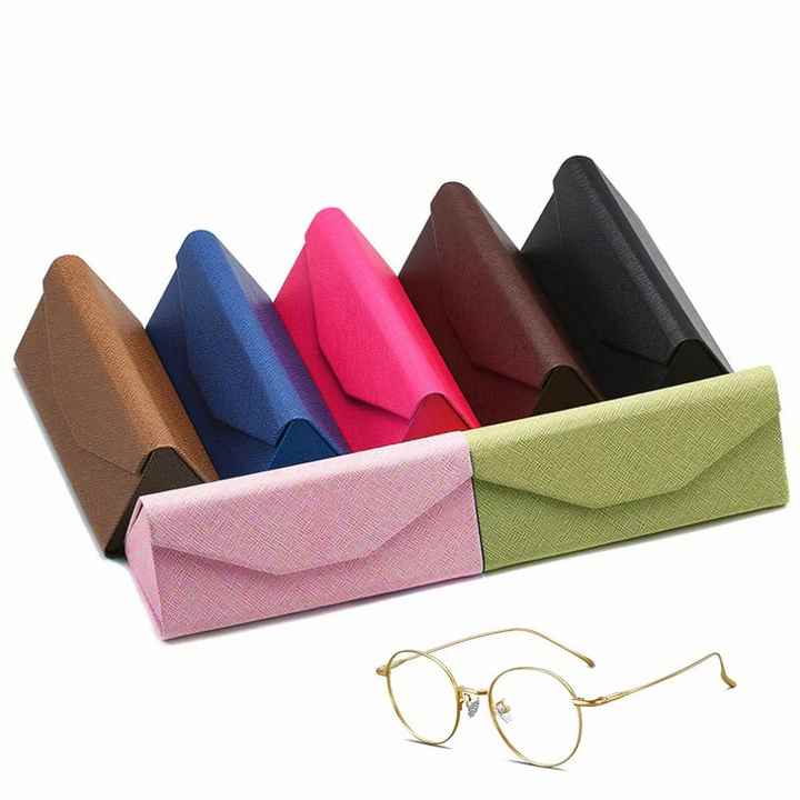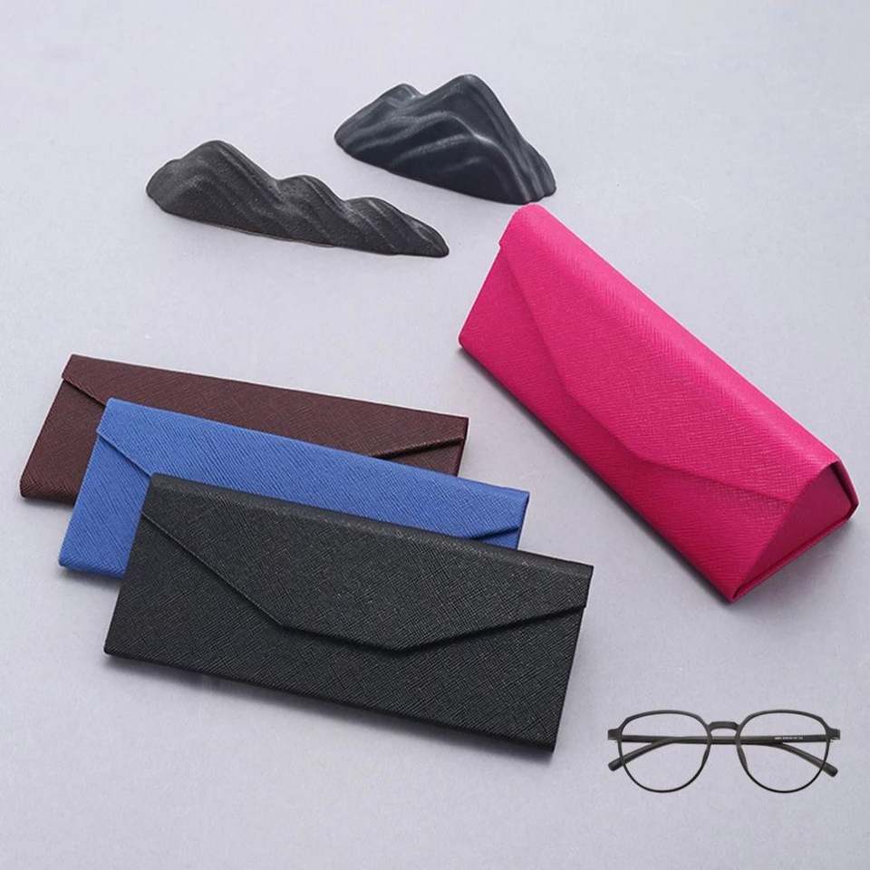 กล่องใส่แว่นตาพับได้หลากสีแบบขายส่ง อุปกรณ์เสริมแว่นตา กล่องแว่นตาแข็งรูปสามเหลี่ยม