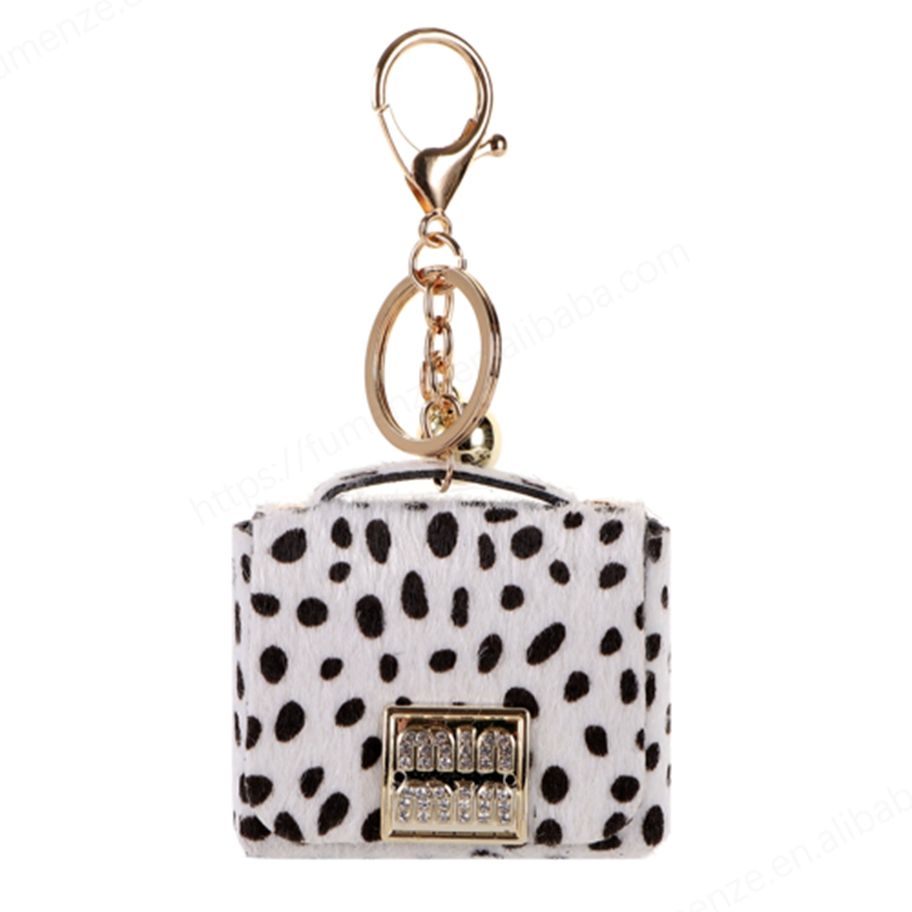 พวงกุญแจกระเป๋าหนัง PU ลายเสือดาวหลากสีสัน ขนาดเล็ก น่ารัก รูปทรงสี่เหลี่ยม สำหรับตกแต่ง