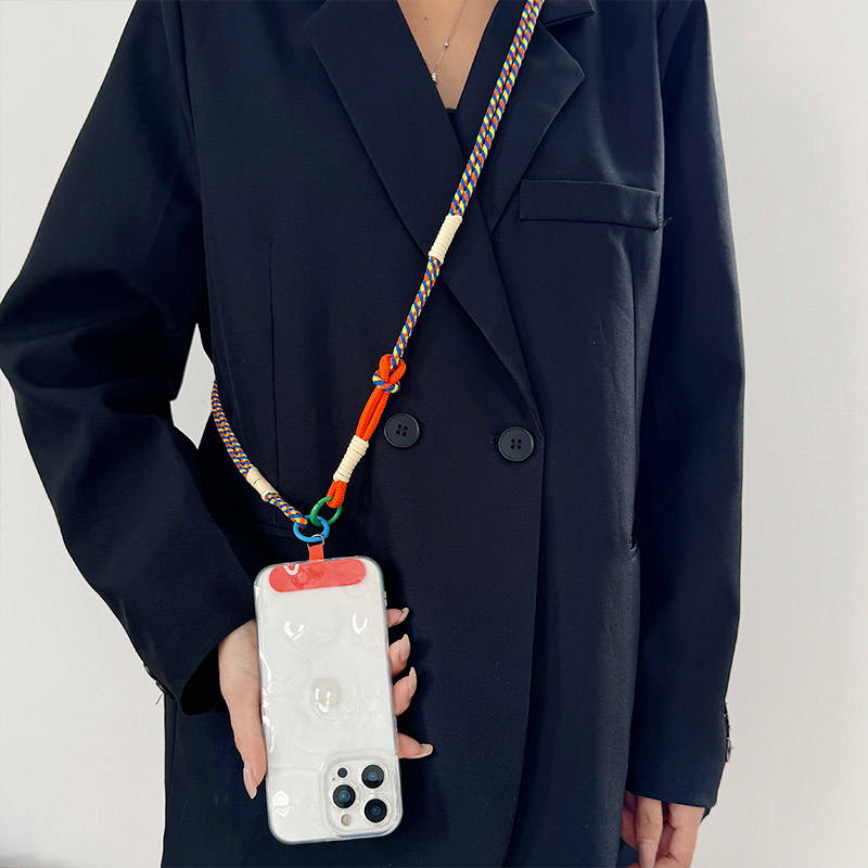 สายคล้องโทรศัพท์แบบยาวหลากสีสันสำหรับขายส่ง สายคล้องคอแบบไขว้ พร้อมแผ่นแปะ อุปกรณ์เสริมสุดเก๋