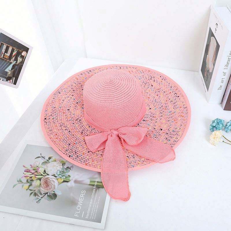 หมวกสานปีกกว้างสีสันสดใสสำหรับผู้หญิง หมวกฟางทรงแบน หมวกชายหาด ขายส่ง