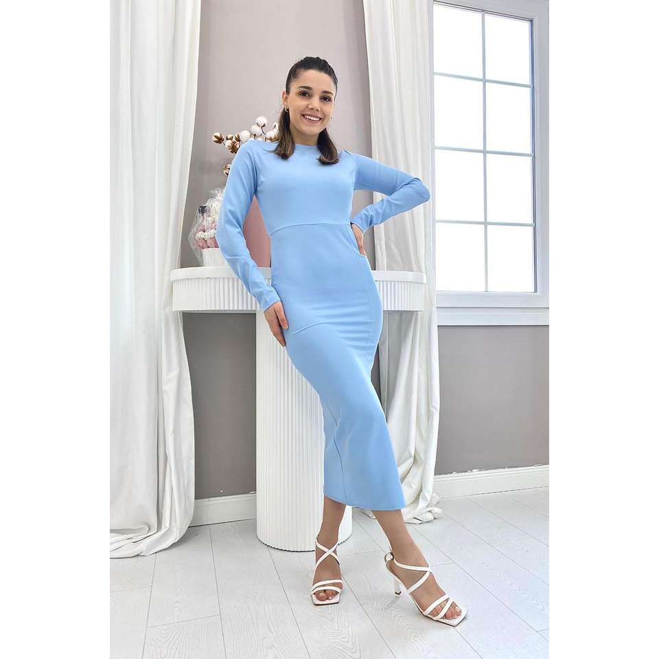เดรสทรงเข้ารูปสีน้ำเงินแบบขายส่ง สวมใส่สบาย ดีไซน์เปิดหลัง เอวทรงธรรมชาติ