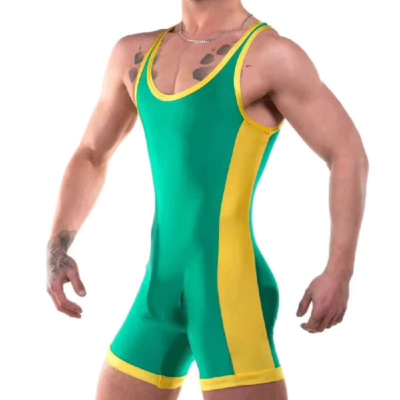 ชุดมวยปล้ำของผู้ชายผ้าโพลีเอสเตอร์ยืดระบายอากาศได้ดีสวมใส่สบายเสื้อกล้ามไซส์ใหญ่ออกแบบได้ตามต้องการ