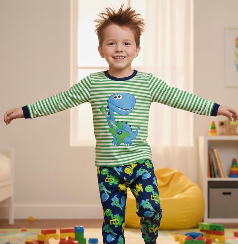 Keywords 1:dinosaur print sleepwear, flame retardant kids clothes