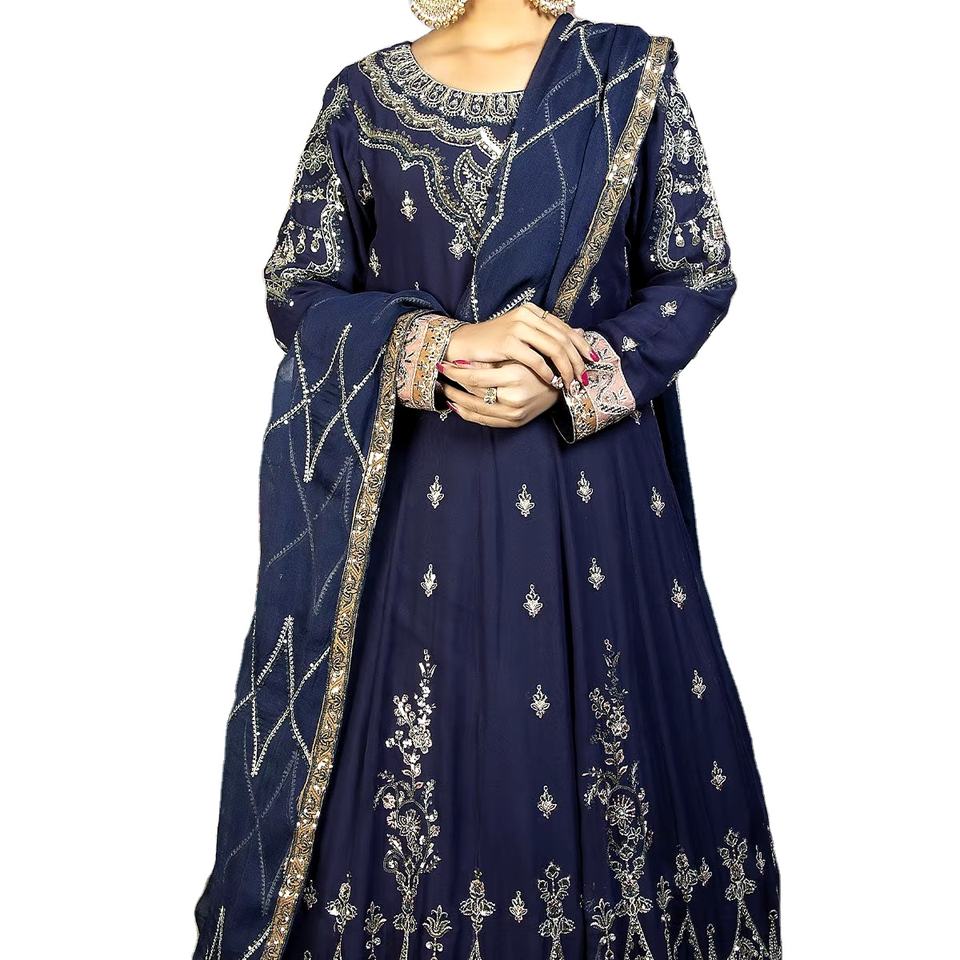Wholesale Comfortable Women's Dress for Parties Weddings Customized Heavy Embroidered Formal Wear with Lace Button Decorations