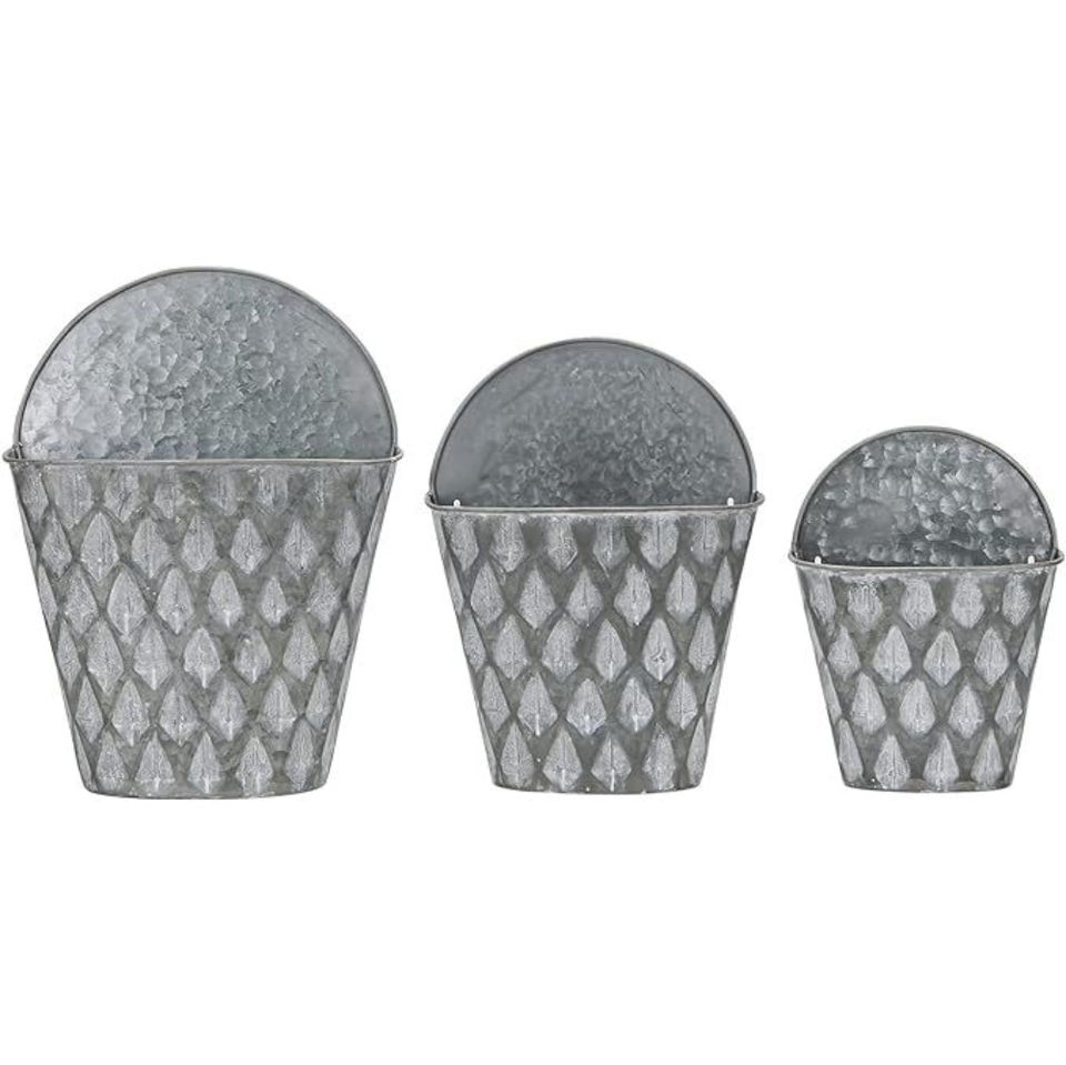 กระถางต้นไม้รูปทรงกรวยชุบสังกะสีแบบขายส่ง ทำด้วยมือจากเหล็ก สำหรับตกแต่งสวนบ้านและบ้านสไตล์ฟาร์มเฮาส์