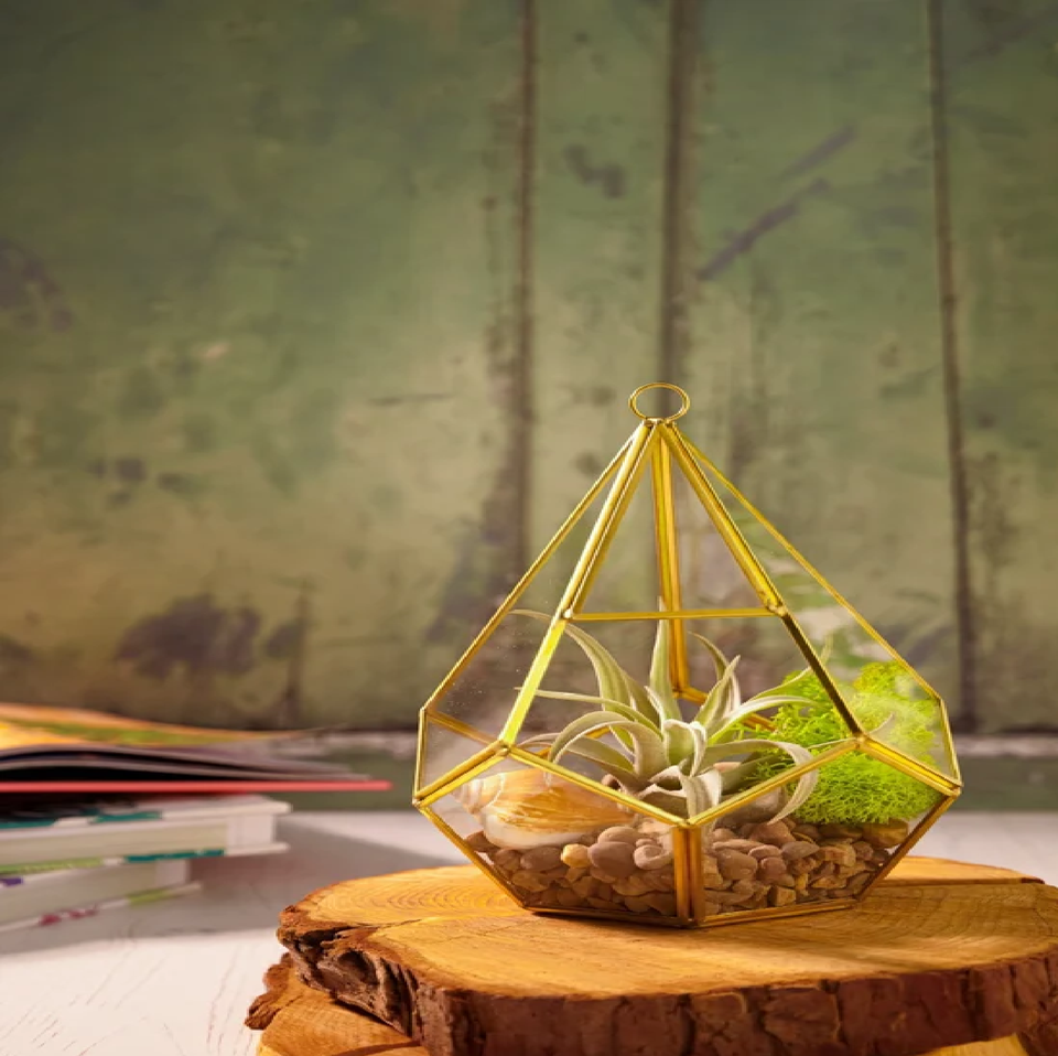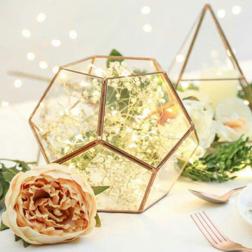 แจกันวางบนโต๊ะทรงลูกบาศก์ทำจากเพชรสีทองดีไซน์ร่วมสมัยสำหรับตกแต่ง