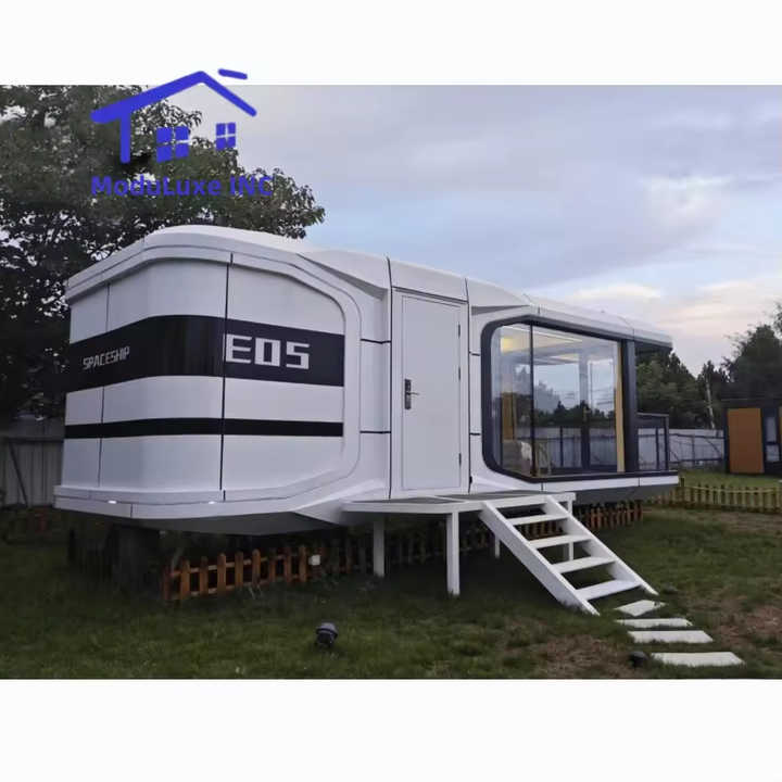 โครงเหล็กขนาดเล็กพร้อมการตกแต่งระดับไฮเอนด์สำหรับบ้านพักตากอากาศดีไซน์ทันสมัยหรูหราร่วมสมัย