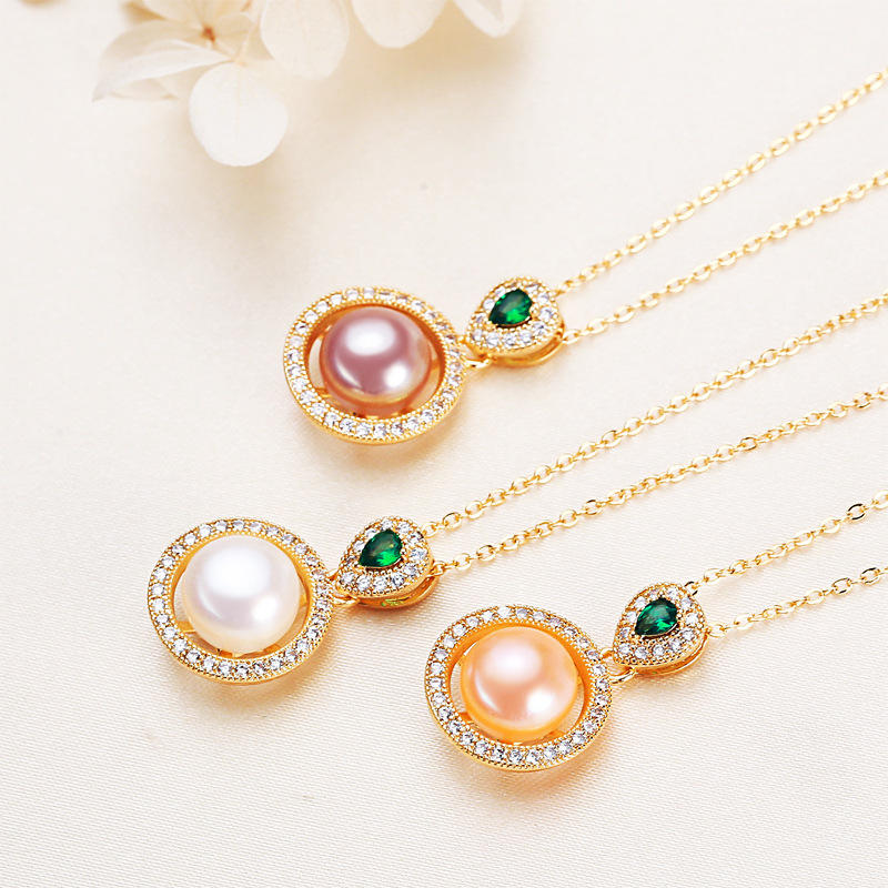 สร้อยคอไข่มุกน้ำจืดผสมทองแดงยี่ห้อเวนชี รุ่นกล้วยไม้ พร้อมจี้ห้อยคอ ดีไซน์สวยหรู รุ่น 35694 ขายส่ง