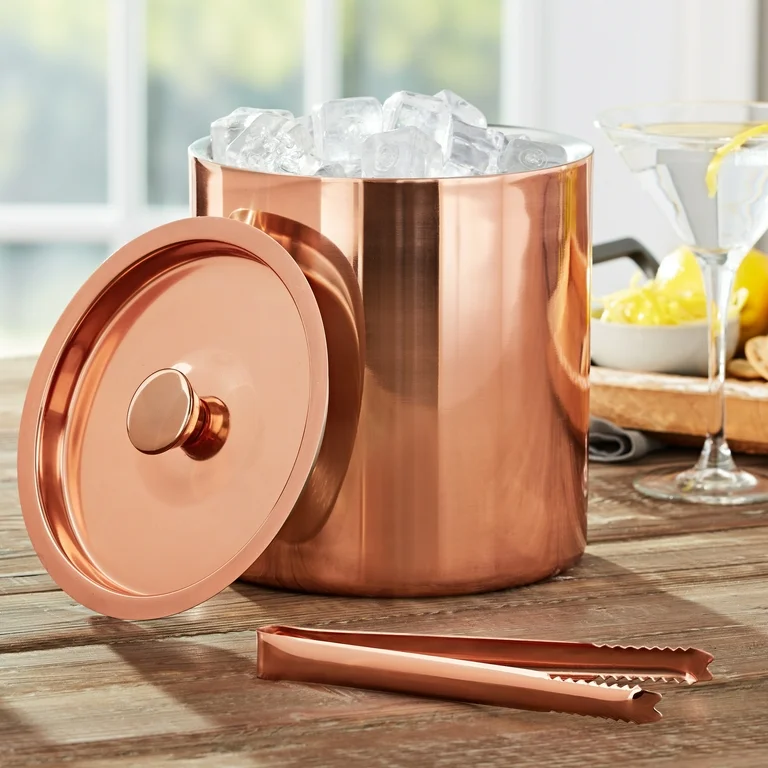 ถังน้ำแข็งทองแดงสำหรับแช่ไวน์พร้อมฝาปิด โลโก้สั่งทำได้ อุปกรณ์บาร์ ถังแช่เครื่องดื่ม ราคาถูกที่สุด