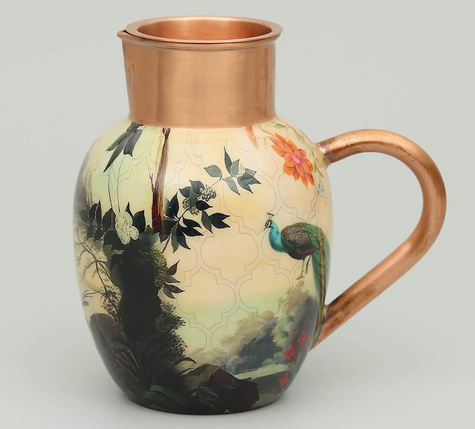 เหยือกทองแดงโลหะแท้เหยือก100% ทองแดงบริสุทธิ์สำหรับการดื่มเหยือกน้ำทองแดงออกแบบและรูปร่างแบบธรรมดาตามต้องการ