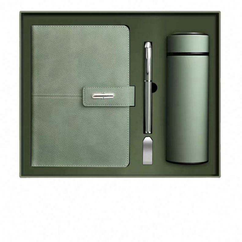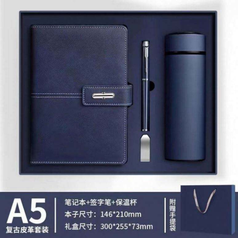 ชุดของขวัญสมุดโน้ตปกหนังพิมพ์ลายสำหรับองค์กรพร้อมขวดน้ำ ปรับแต่งได้ตามต้องการ กล่องของขวัญไดอารี่หรูหราขนาด A3 พร้อมปากกาและ USB