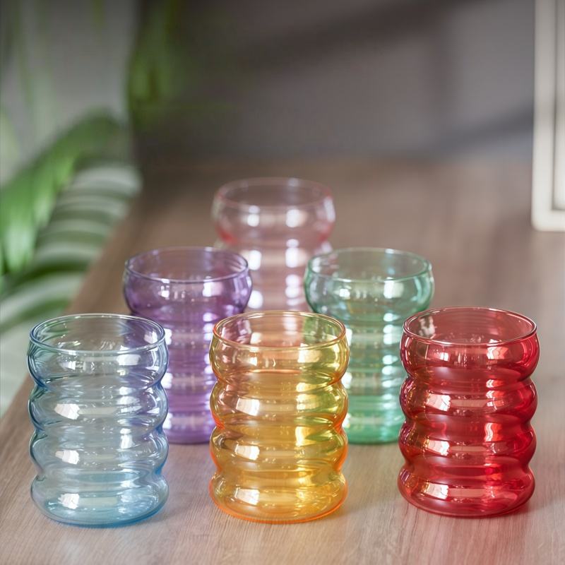 Wholesale Corrugated 300ml Glass Cups, Coffee Milk Cups, Household Microwave-safe Heating Cute Caterpillar Cups, Ring Cups