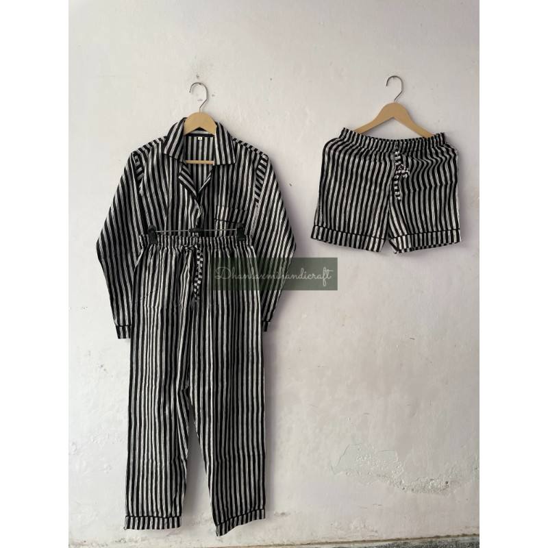 เซ็ตชุดนอนผ้าฝ้ายสีดำและสีขาว3ชิ้นชุดนอนยาวและสั้นสำหรับเพื่อนเจ้าสาวชุดนอน unisex ผู้หญิง
