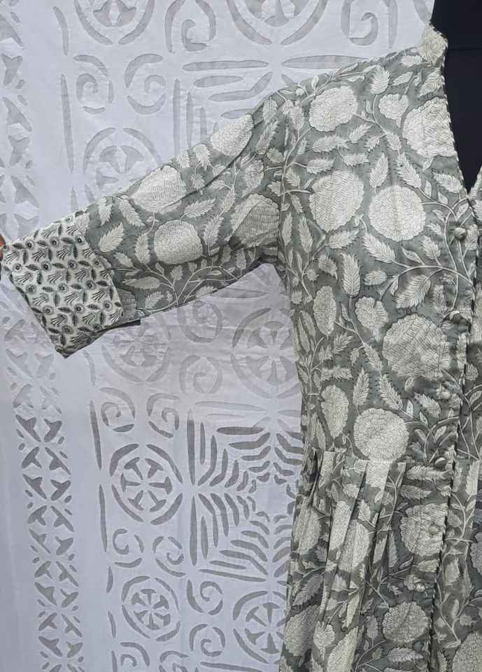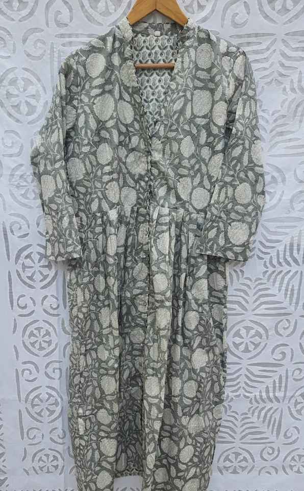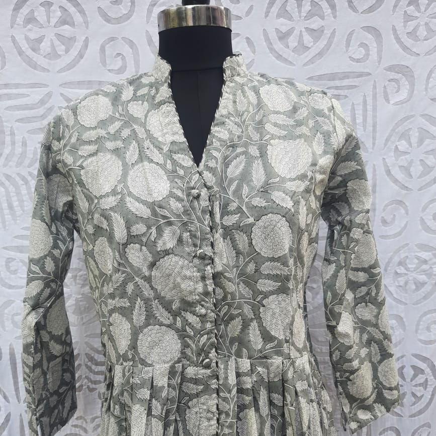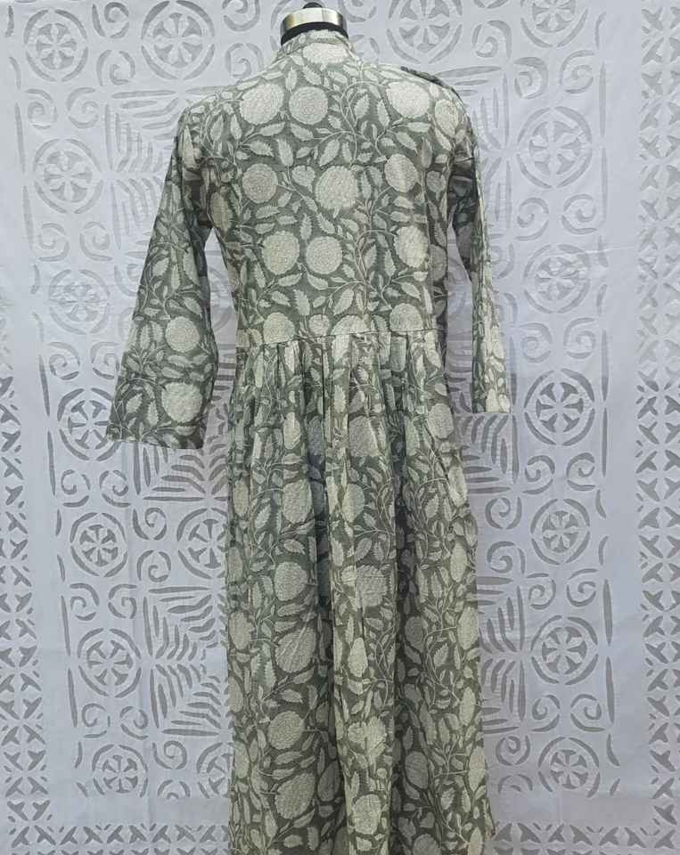 Wholesale Cotton Block Printing Fabric Shirt Dress With Button Down Closure Sewing Pleated Looses Fitting Ladies Long Dress