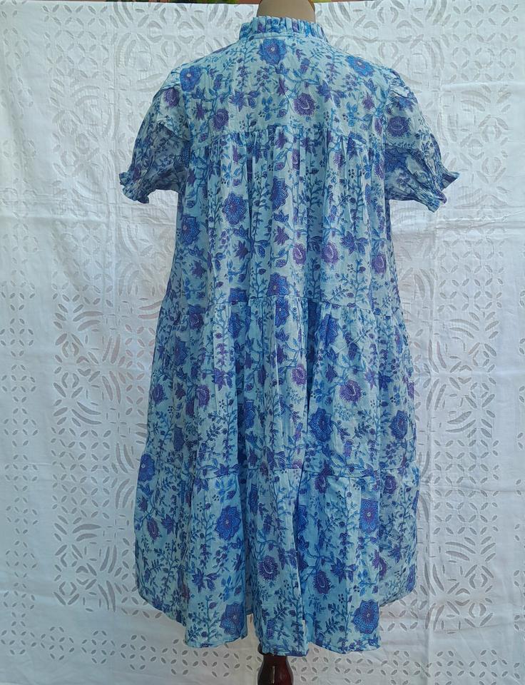 Product Name:Colorful Hand Block Printed Cotton Women Mid Calf Shirt Pattern Dress