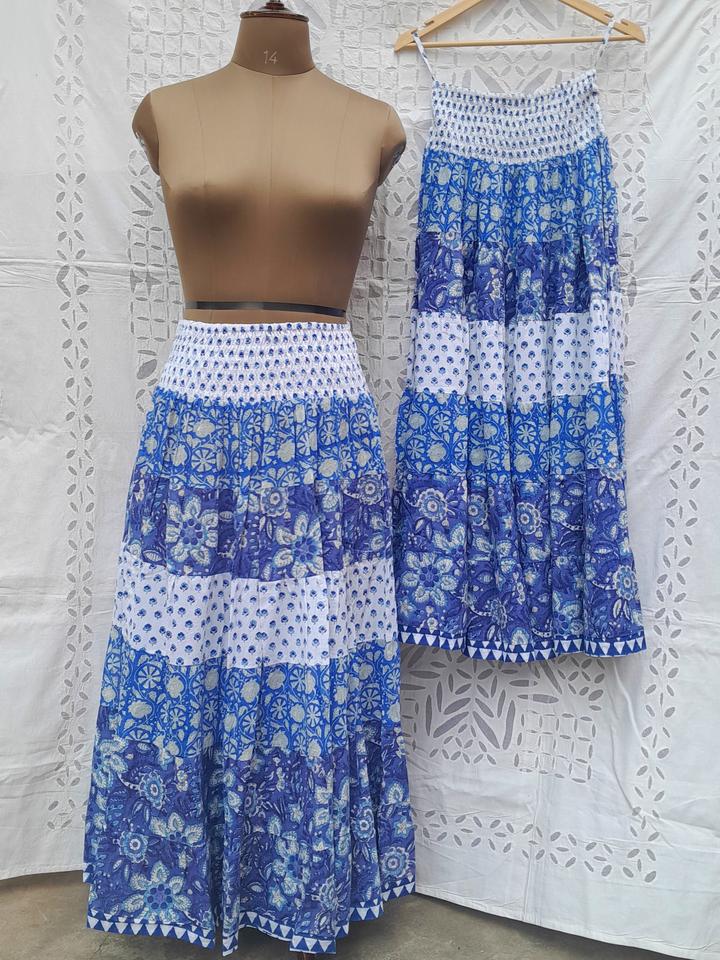 ชื่อสินค้า:กระโปรงยาวผ้าฝ้ายพิมพ์ลายบล็อกมือสำหรับผู้หญิง