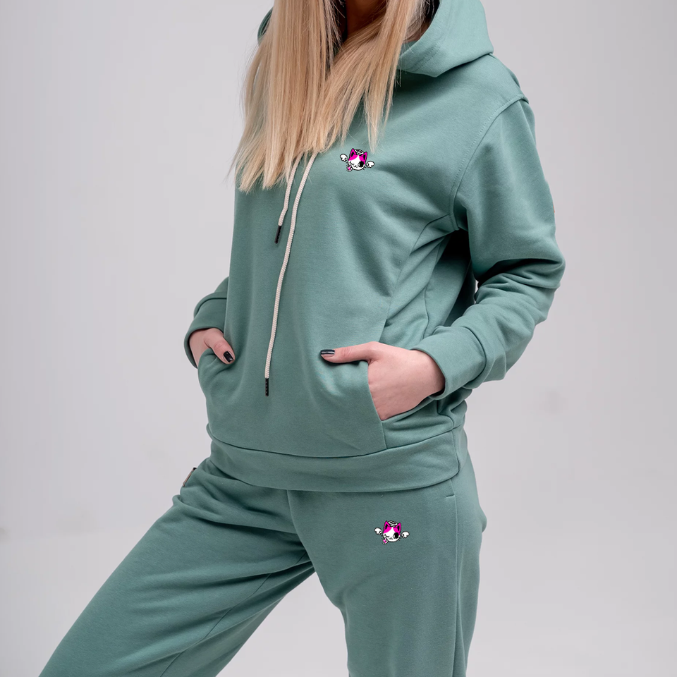 ชุดวอร์มแขนกุดสำหรับผู้หญิงชุดวอร์มผ้าฝ้าย2ชิ้นกระดุมสีพื้นสำหรับฤดูหนาว