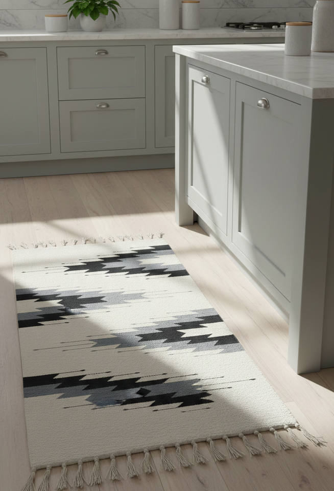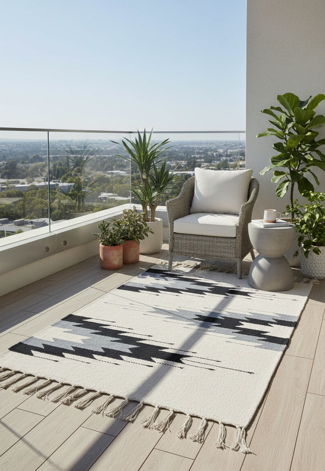 พรมปูพื้น/พรมทอขนสัตว์ลายดอกไม้ทันสมัย ซักเครื่องได้ กลับด้านได้ สีขาว เหมาะสำหรับตั้งแคมป์ บ้าน ปิกนิก และการเดินทาง ขายส่ง
