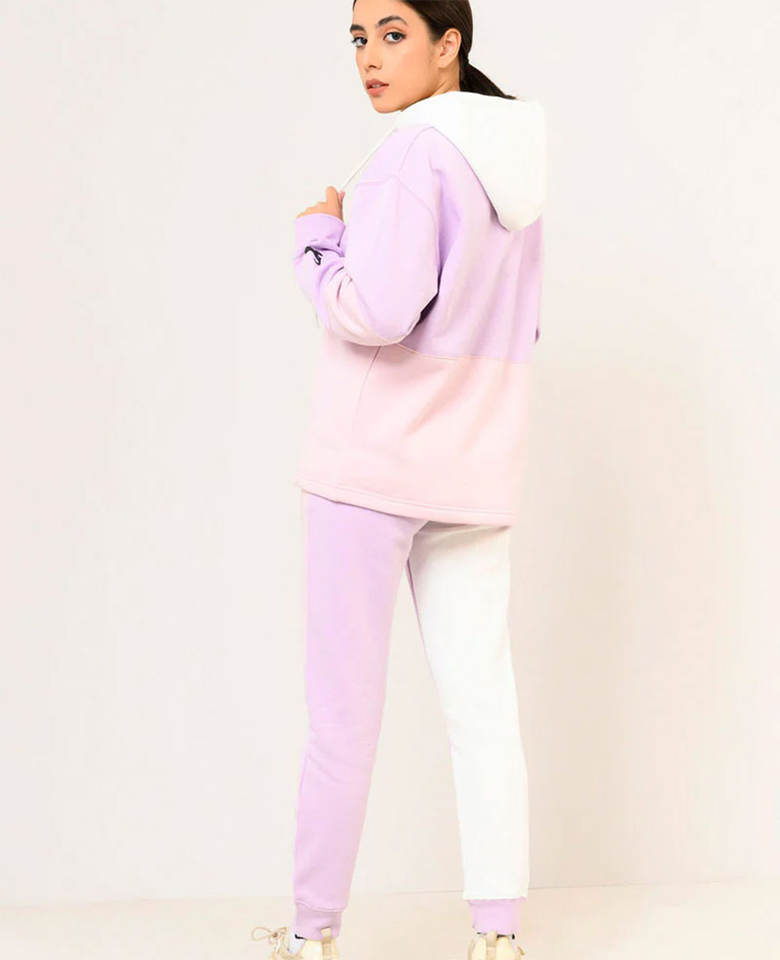 ชุดวอร์มผ้าคอตตอนผ้าฟลีซสองชิ้นสำหรับผู้หญิงชุดวอร์มแบบสวมหัวพิมพ์ลายแฟชั่นสำหรับฤดูหนาว