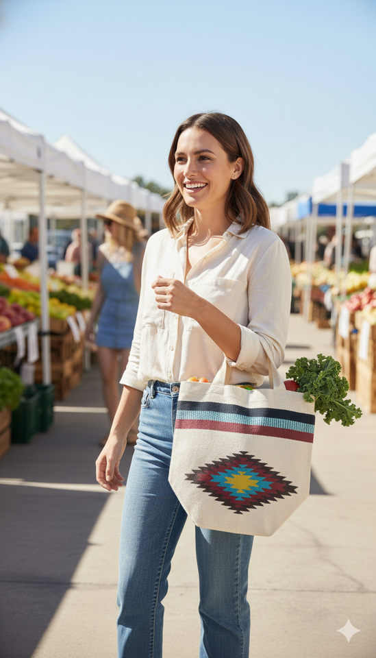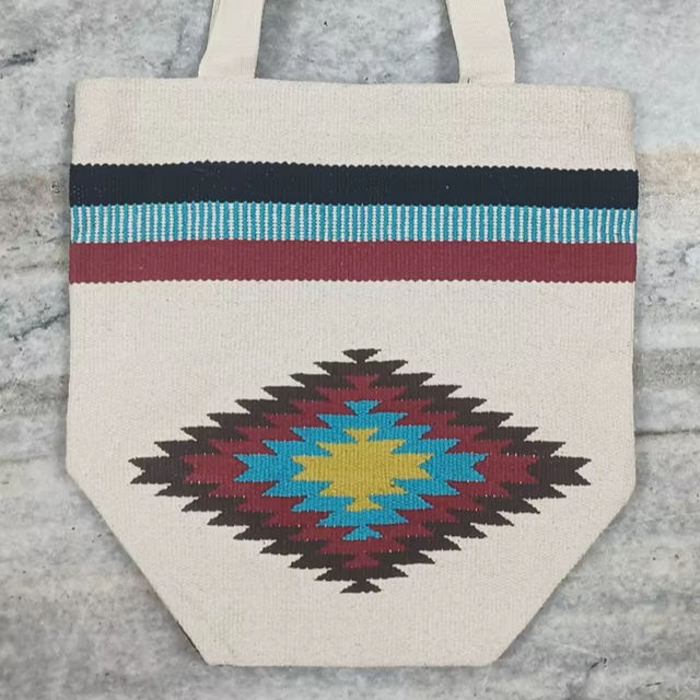 กระเป๋าช้อปปิ้งผ้าฝ้ายทอมือลายเรขาคณิตแบบกลับด้านได้ ขายส่ง